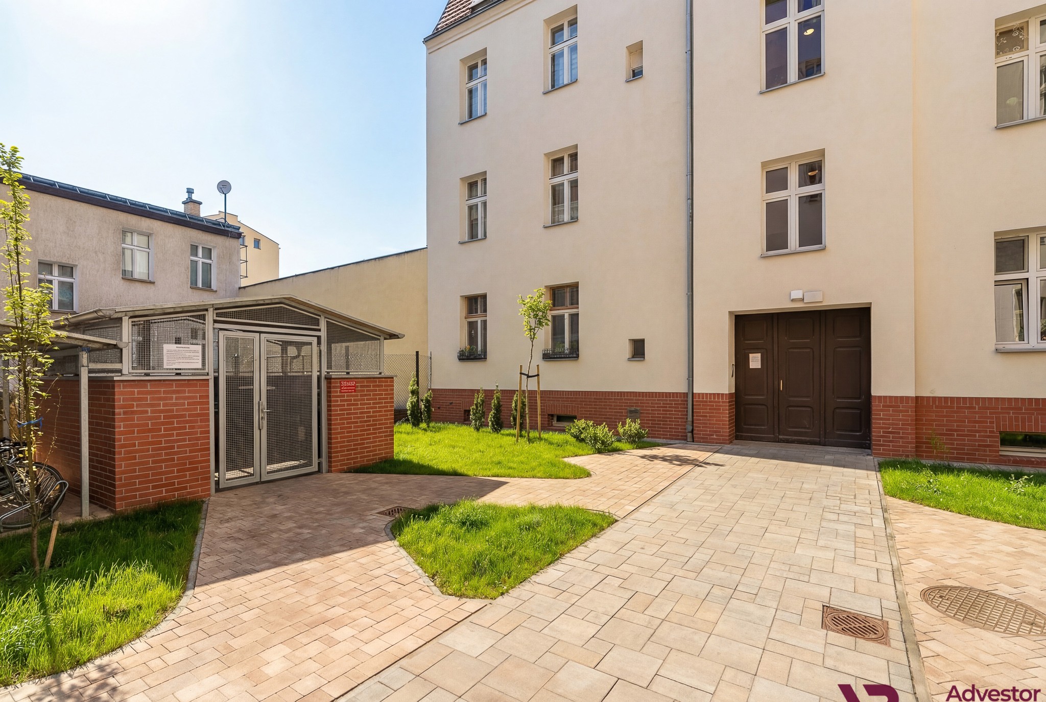 Mieszkanie mieści się w oficynie, czyli w tylnej części zabudowy. To rozwiązanie sprawia, że jest tu zdecydowanie ciszej niż w mieszkaniach od strony ulicy. Dziedziniec jest spokojny i kameralny, co w ścisłym centrum Poznania jest dużą wartością.