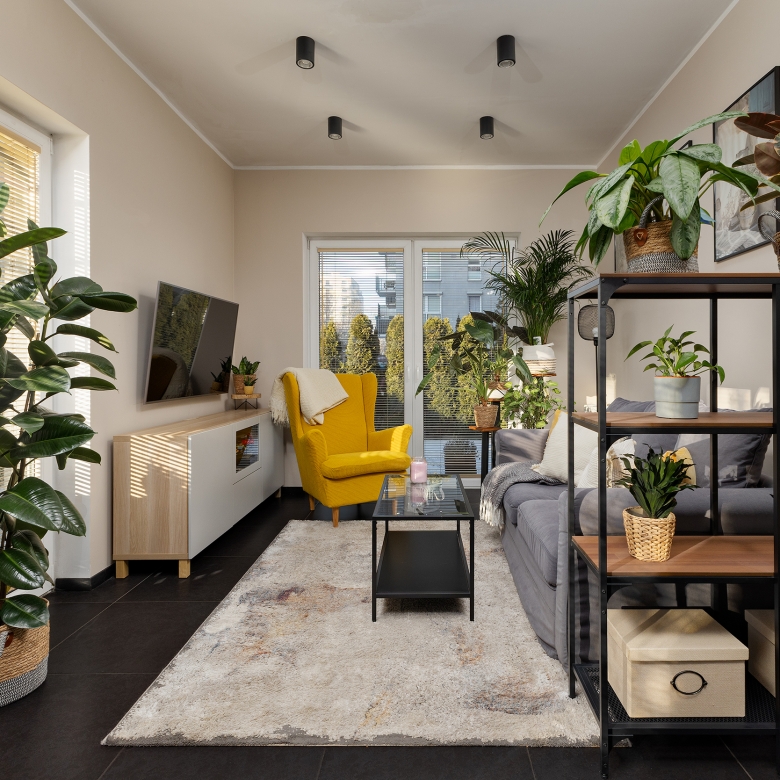 Mieszkanie o powierzchni 61 m² zostało zaprojektowane przez renomowaną projektantkę wnętrz – każdy centymetr tej przestrzeni jest dobrze przemyślany i wykorzystany.