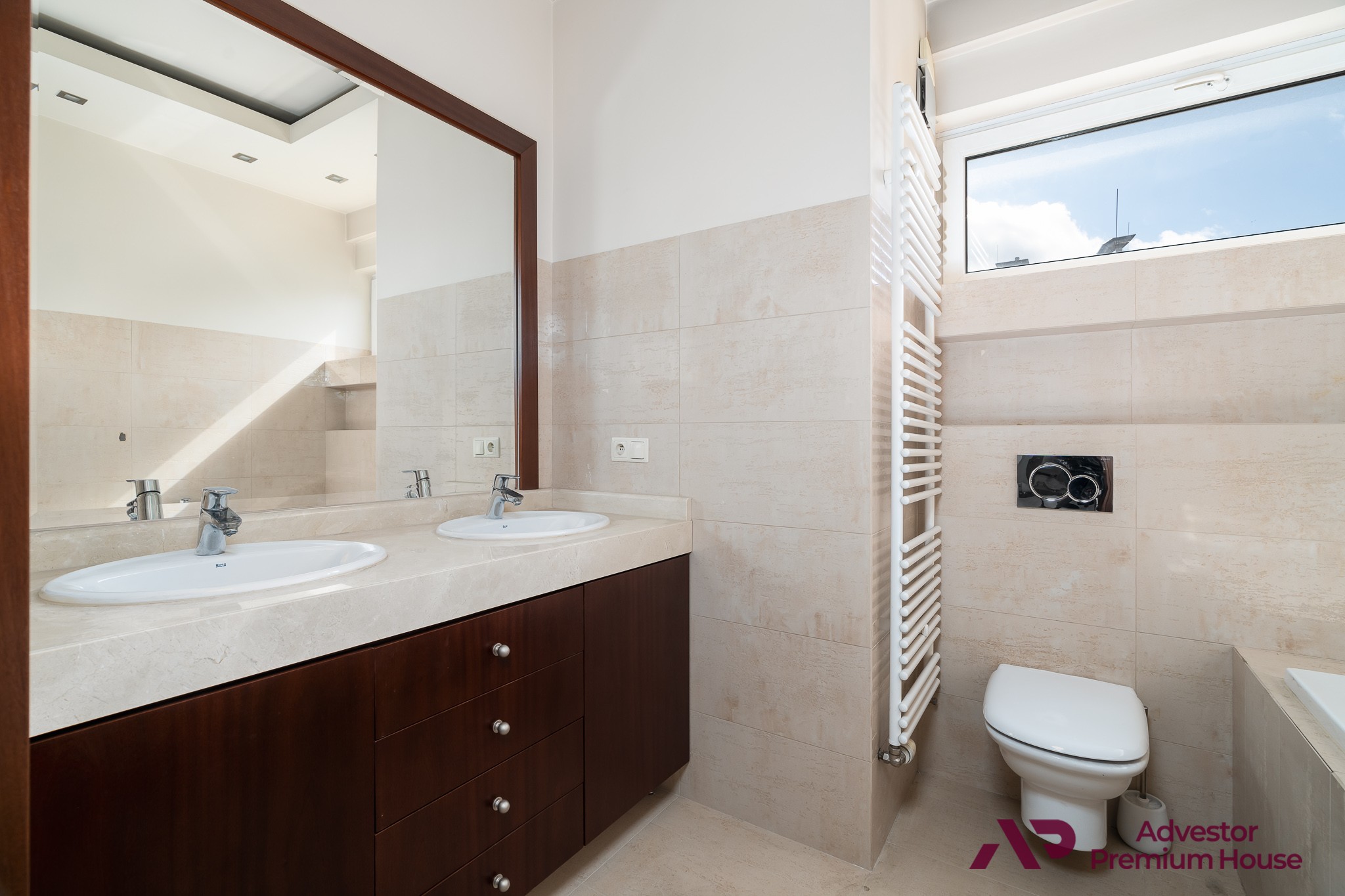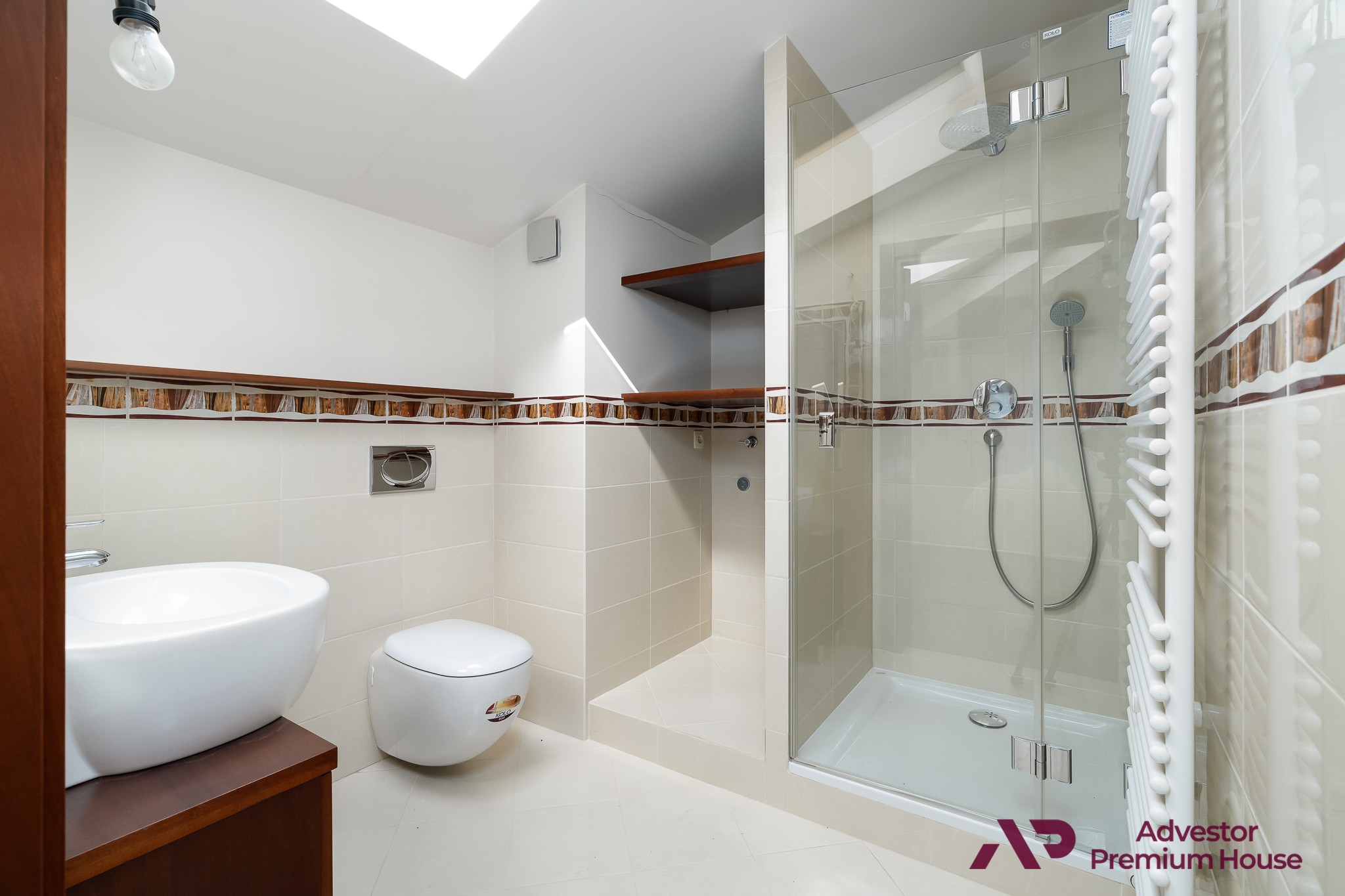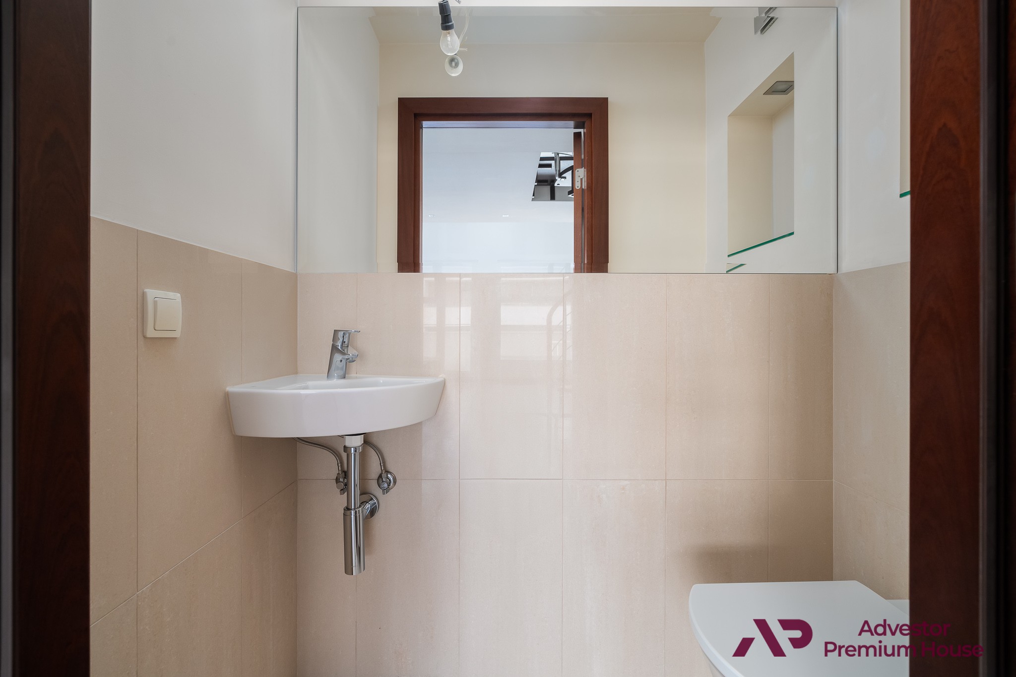Funkcjonalności w apartamencie dopełnia łazienka z wanną i dodatkowe wc.