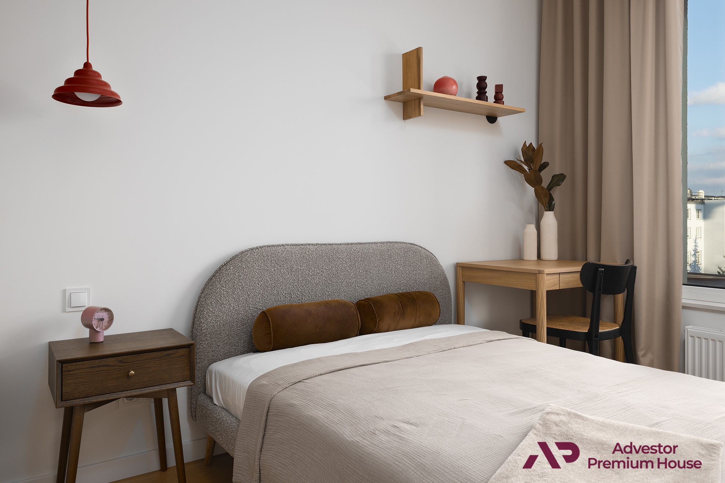 Mieszkanie ma 42 m2 powierzchni i zostało wykończone w standardzie z „górnej półki”. Zaprojektowane przez poznańską renomowaną pracownię architektoniczną Moosh Design. Absolutnie żaden element zarówno meble, armatura oraz dodatki czy dekoracje nie są tu przypadkowe. Większość z elementów wyposażenia w mieszkaniu to obiekty pożądania wśród kolekcjonerów i miłośników vintage. Część mebli pochodzi od polskich producentów wysokiej jakości. Jedno jest pewne jest to bardzo spójna przestrzeń zdecydowanie dla koneserów, który cenią nietuzinkowość, detal i nie chcą wybierać między pięknem, a funkcjonalnością.