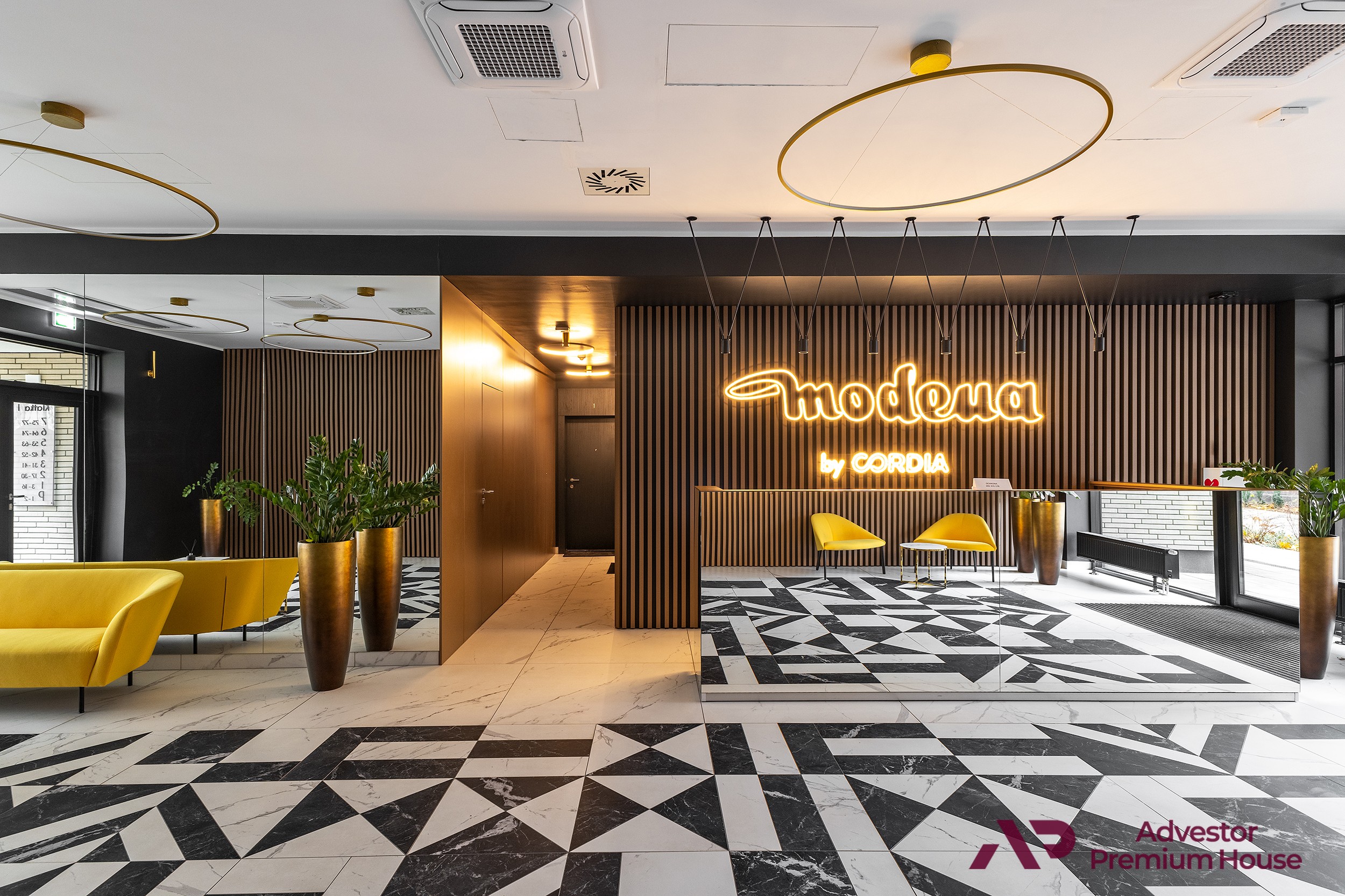 • eleganckie części wspólne wykończone w wysokim standardzie, w tym efektowne windy