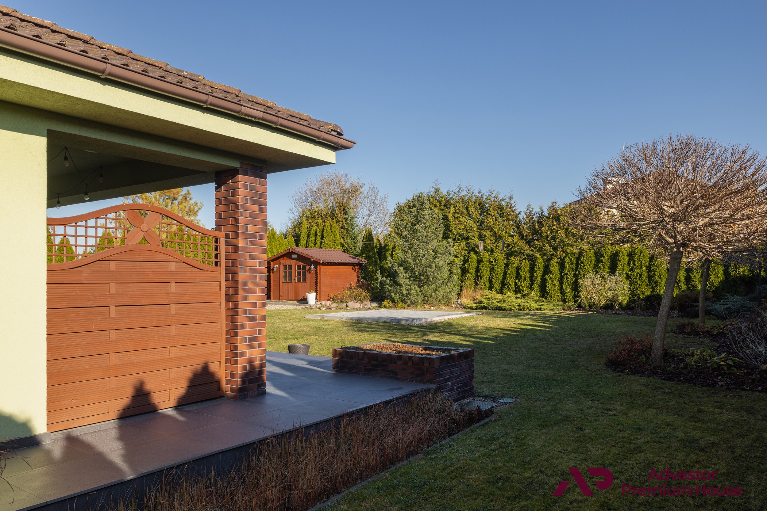 Na szczególną uwagę zasługuje pięknie utrzymany ogród, starannie zaprojektowany i wyposażony w system automatycznego nawadniania. Wokół posesji rosną wysokie, gęste tuje, które tworzą naturalną zieloną ścianę, zapewniając pełną prywatność i kameralny klimat. Zarówno ogród, jak i front posesji są bardzo zadbane, co podkreśla estetykę całej nieruchomości.