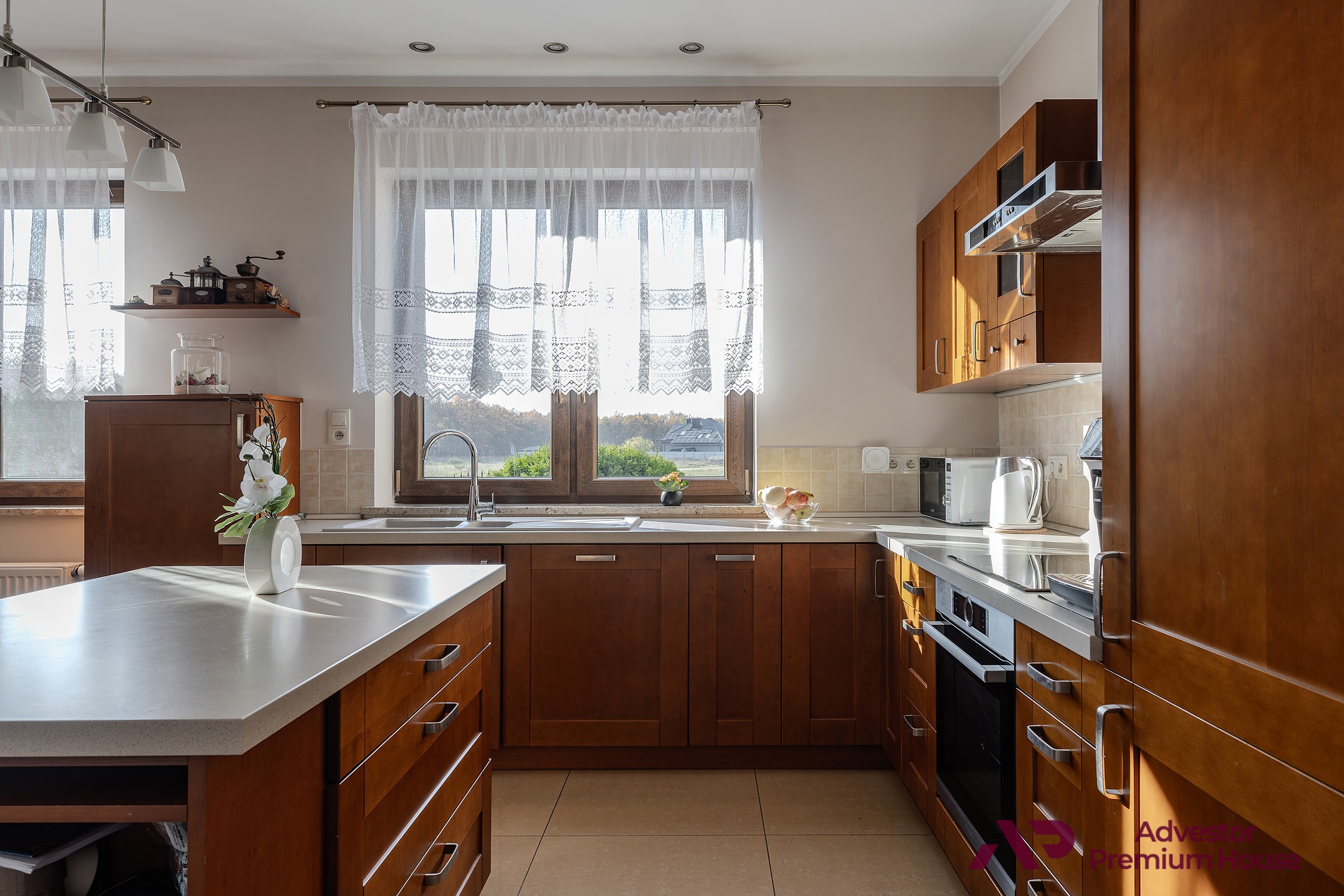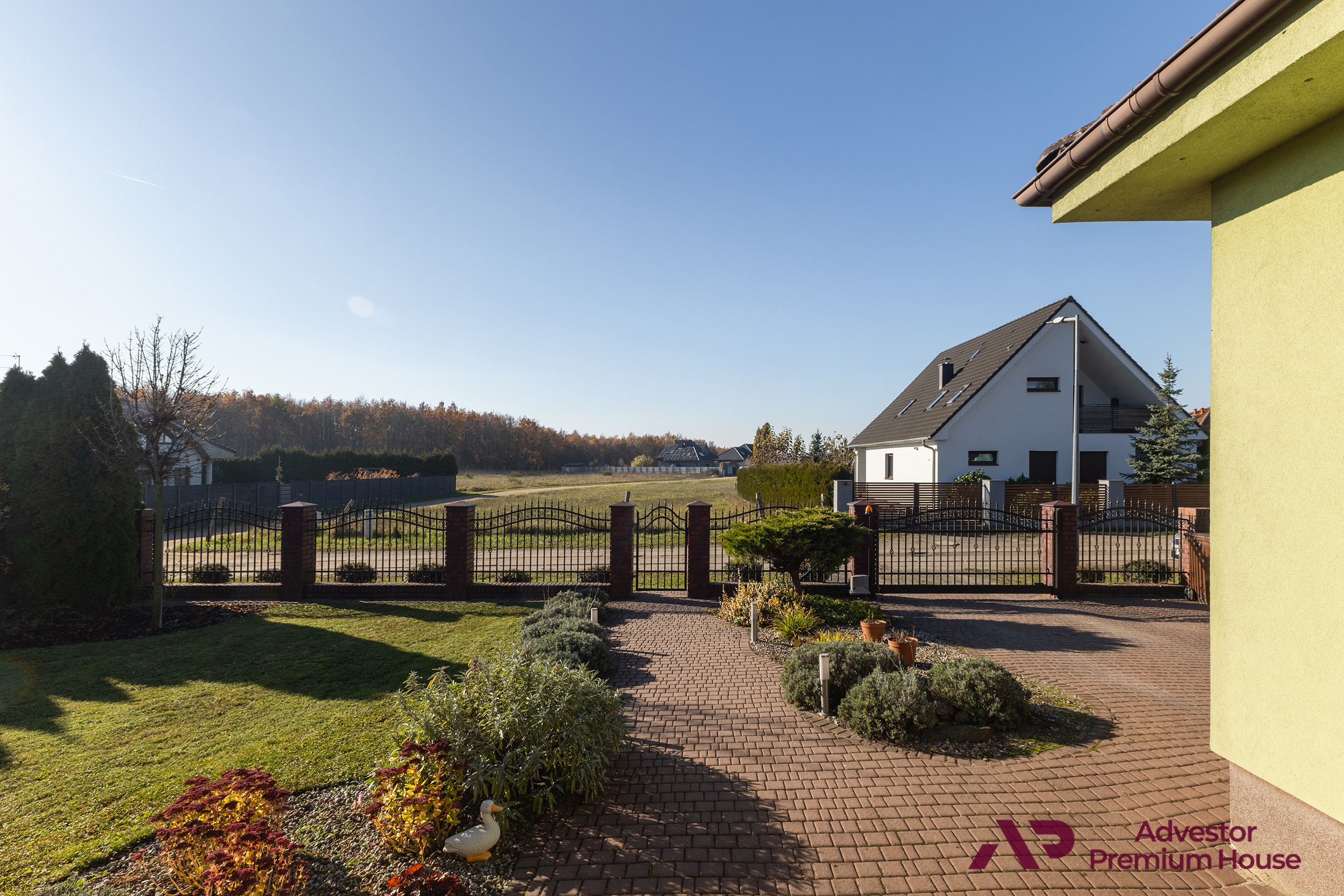 Wszystkie okna wyposażone są w automatyczne rolety, a bezpieczeństwo mieszkańców podnosi system alarmowy oraz monitoring. Brama wjazdowa i garażowa są automatyczne, co dodaje codziennej wygody.