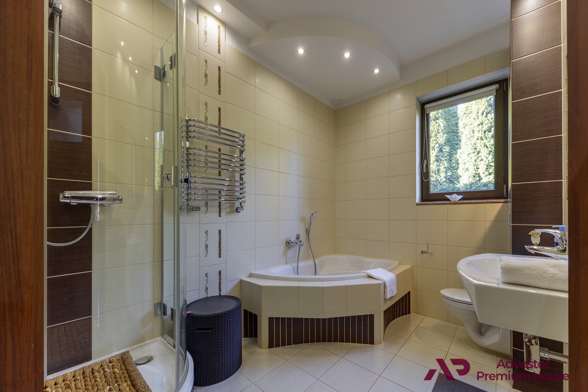 Łazienka z oknem wyposażona jest zarówno w wannę, jak i prysznic, dzięki czemu każdy może wybrać sposób relaksu dopasowany do swoich preferencji.