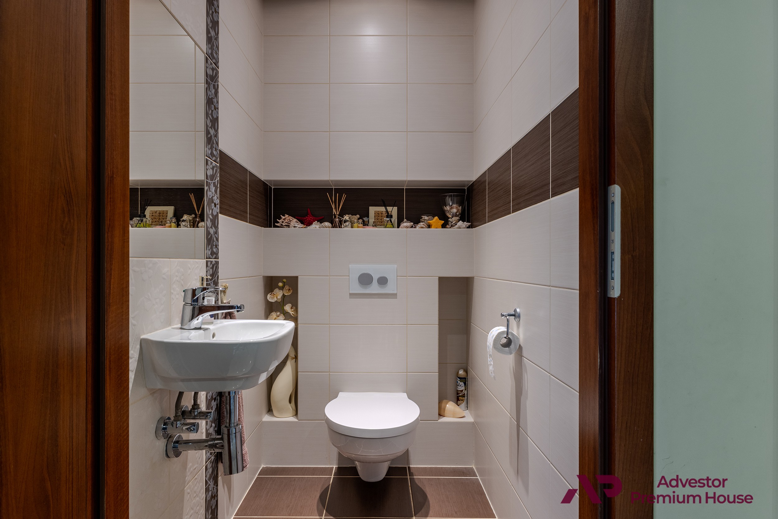 Dodatkowo w domu znajduje się osobne WC oraz garderoba z półkami, zapewniająca wygodne miejsce do przechowywania.