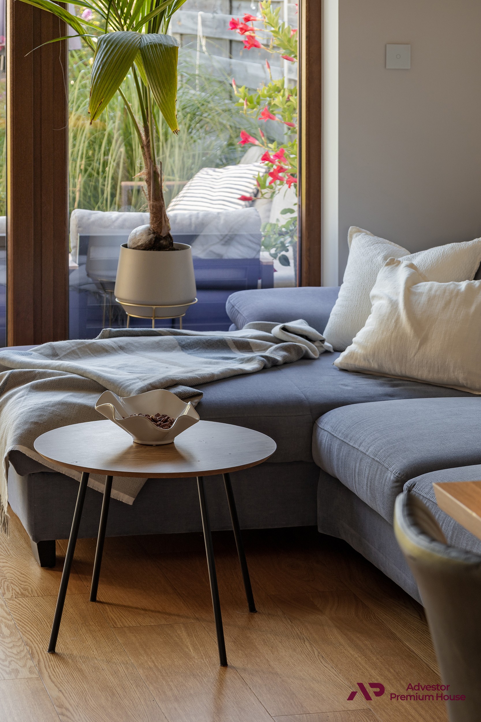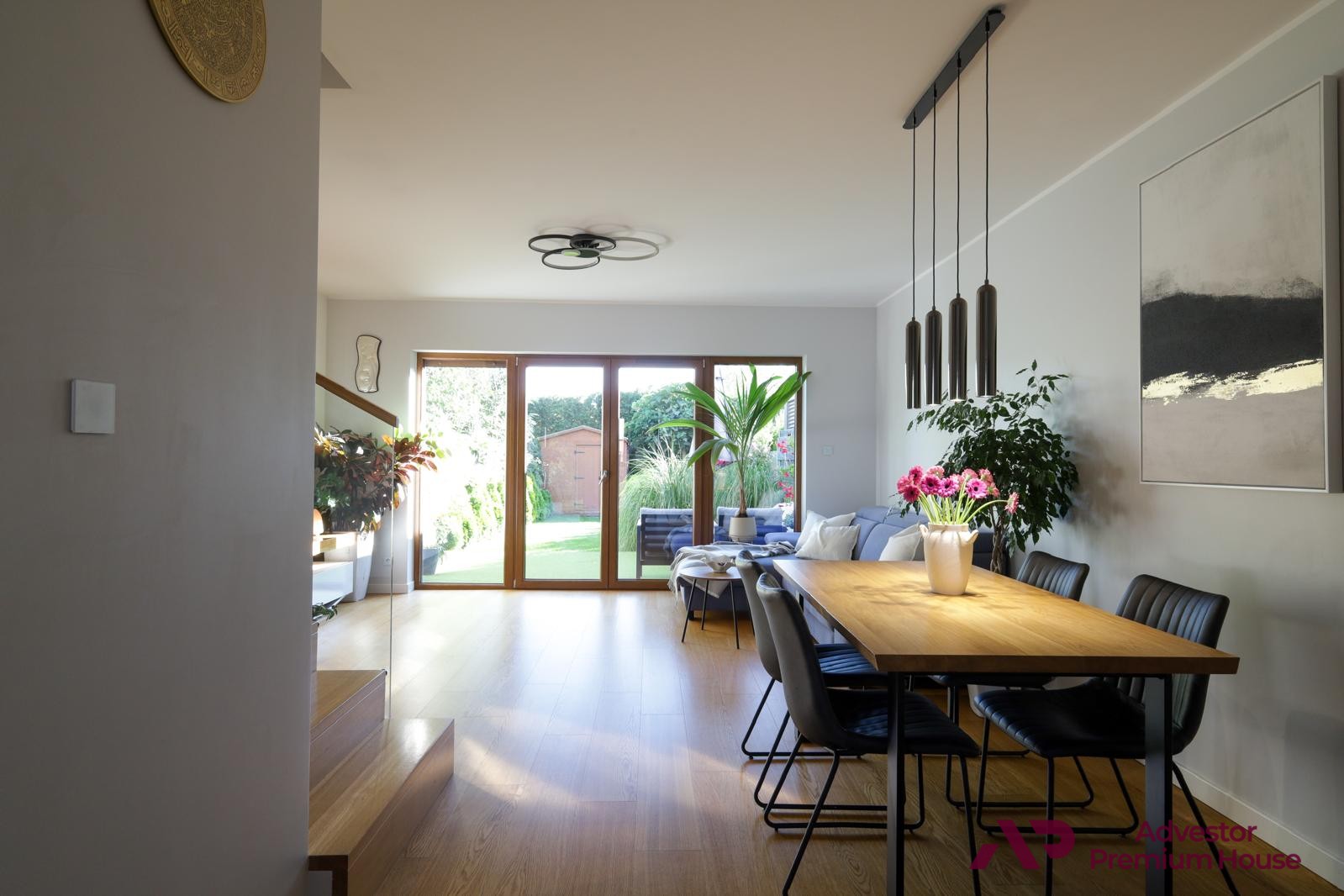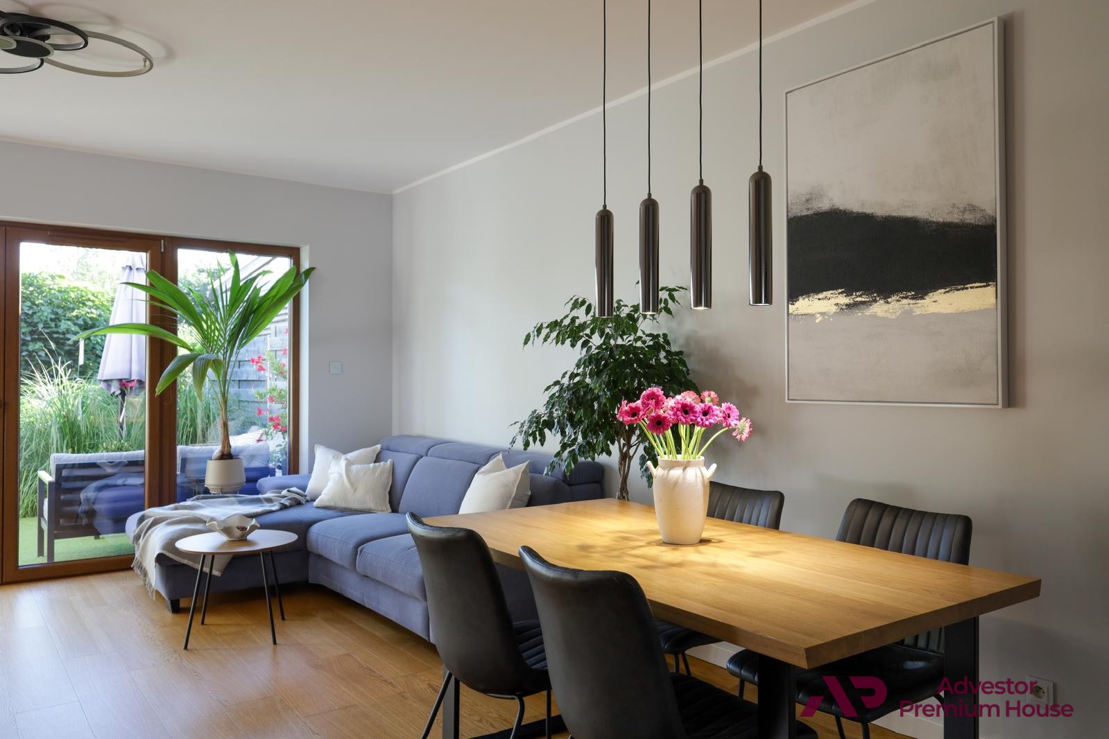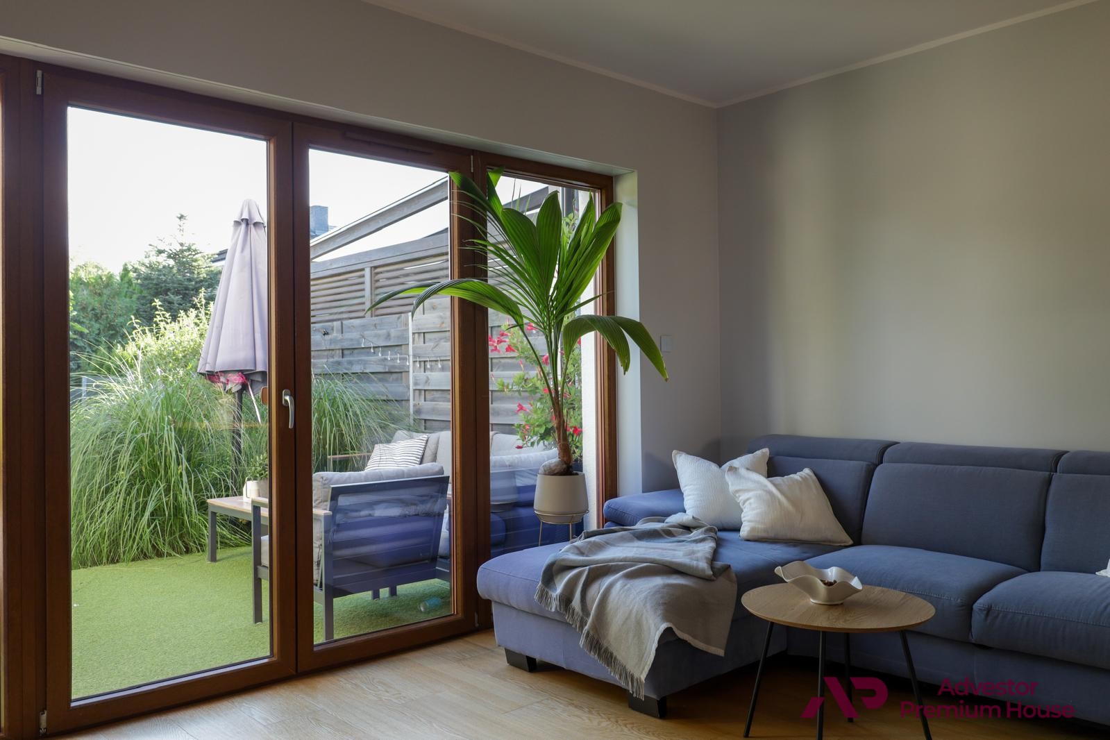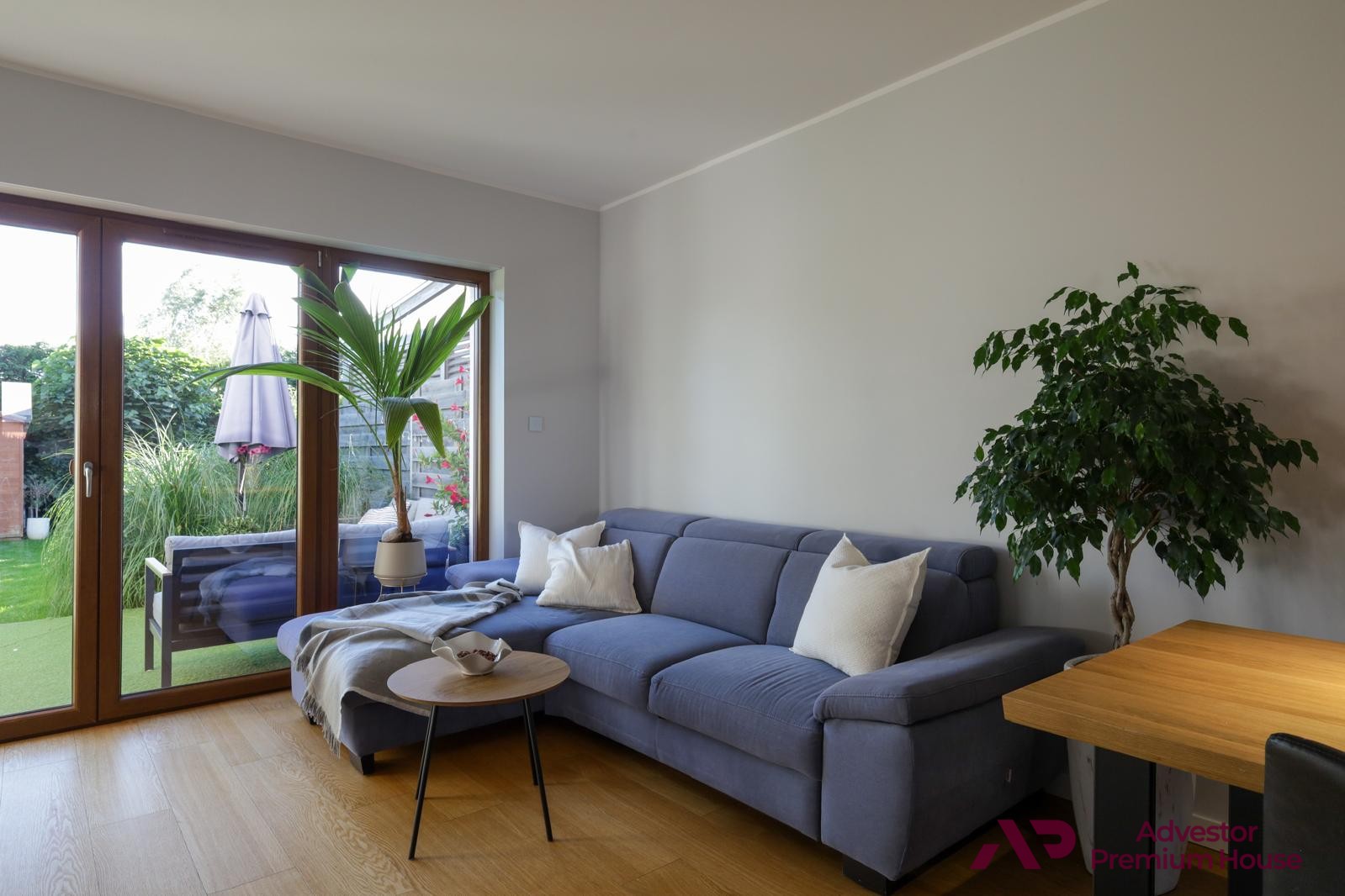 • taras z meblami ogrodowymi, który latem staje się sercem domu – doskonały na poranną kawę, rodzinne posiłki czy spotkania z przyjaciółmi,