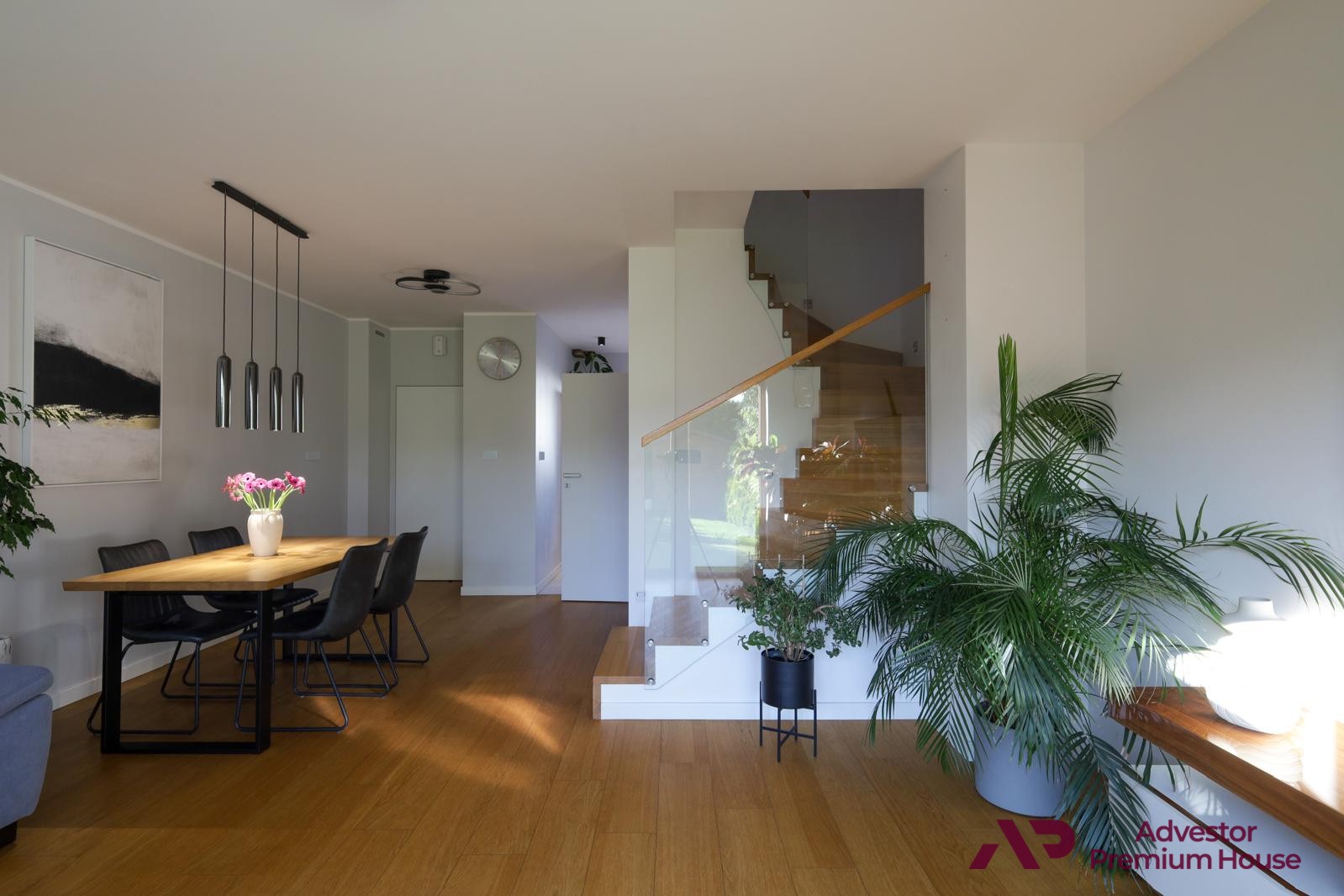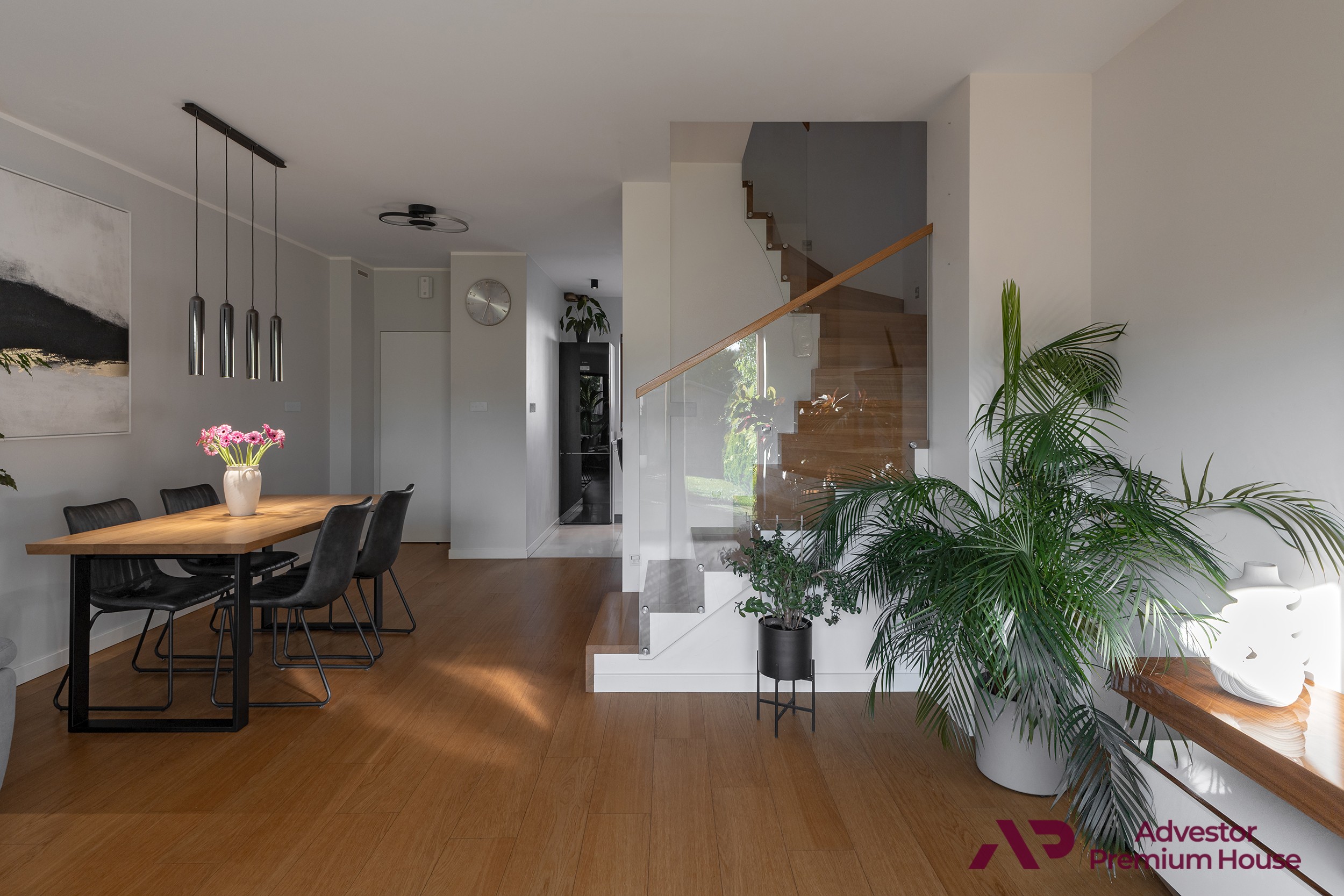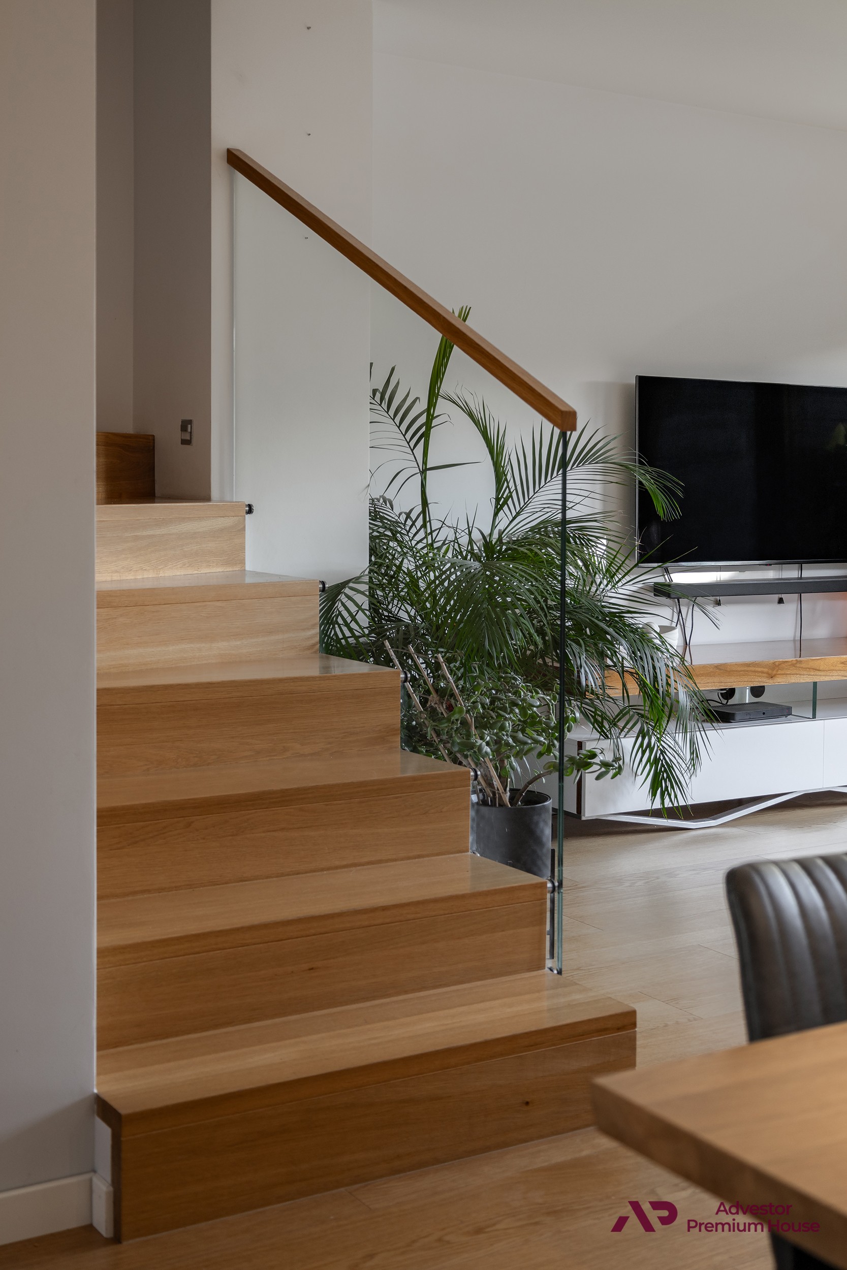 • Schody dębowe z przeszkloną balustradą,