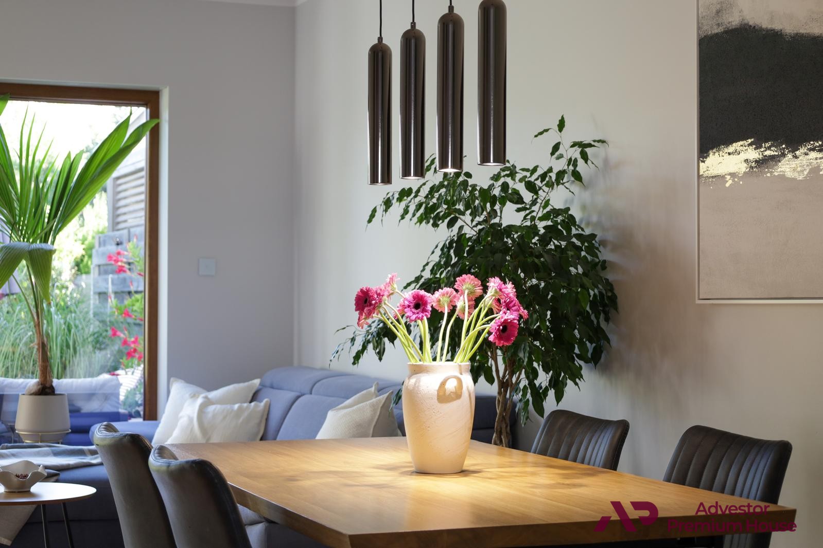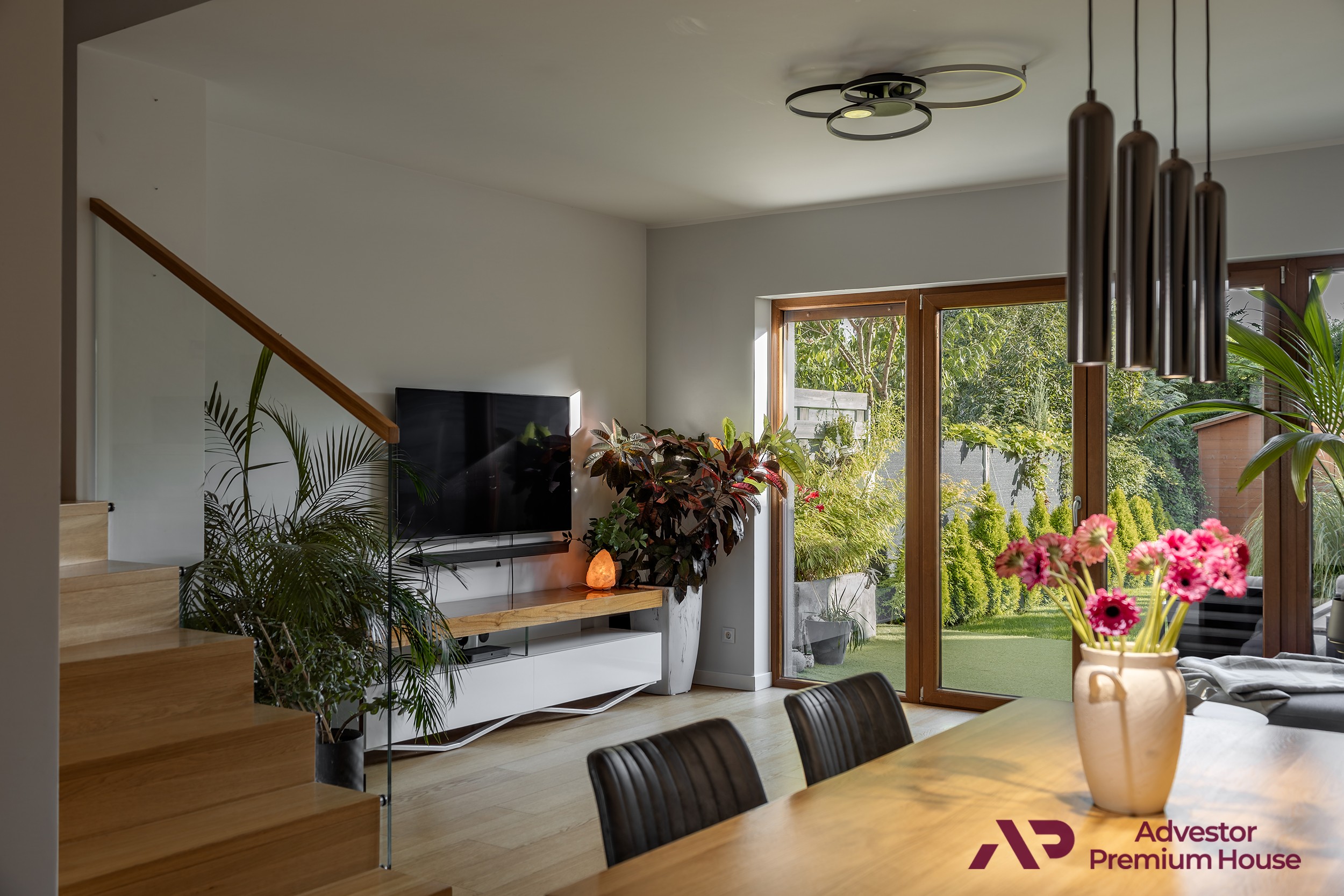 • Salon (28 m²) – komfortowa przestrzeń dzienna z wydzieloną strefą wypoczynkową i jadalną, z wyjściem na taras i ogród.