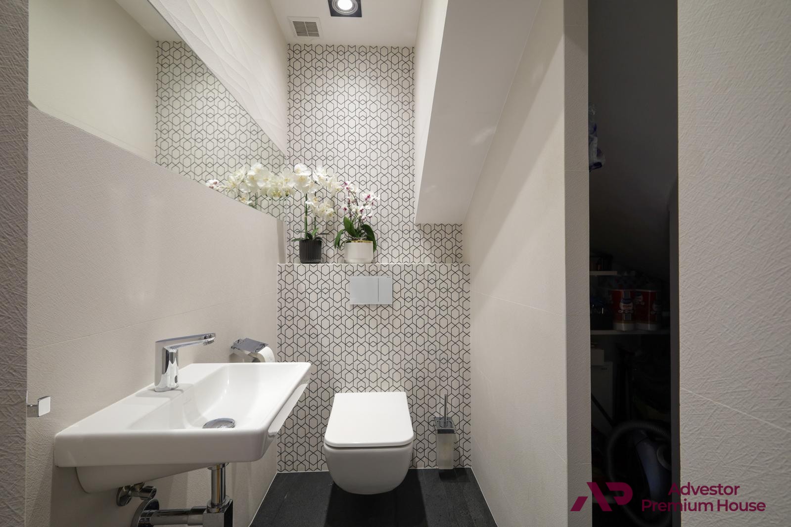 • Toaleta (2,33 m²) – praktyczna i wygodna dla domowników oraz gości, wraz z wydzielonym miejscem do przechowywania akcesoriów do utrzymania porządku
