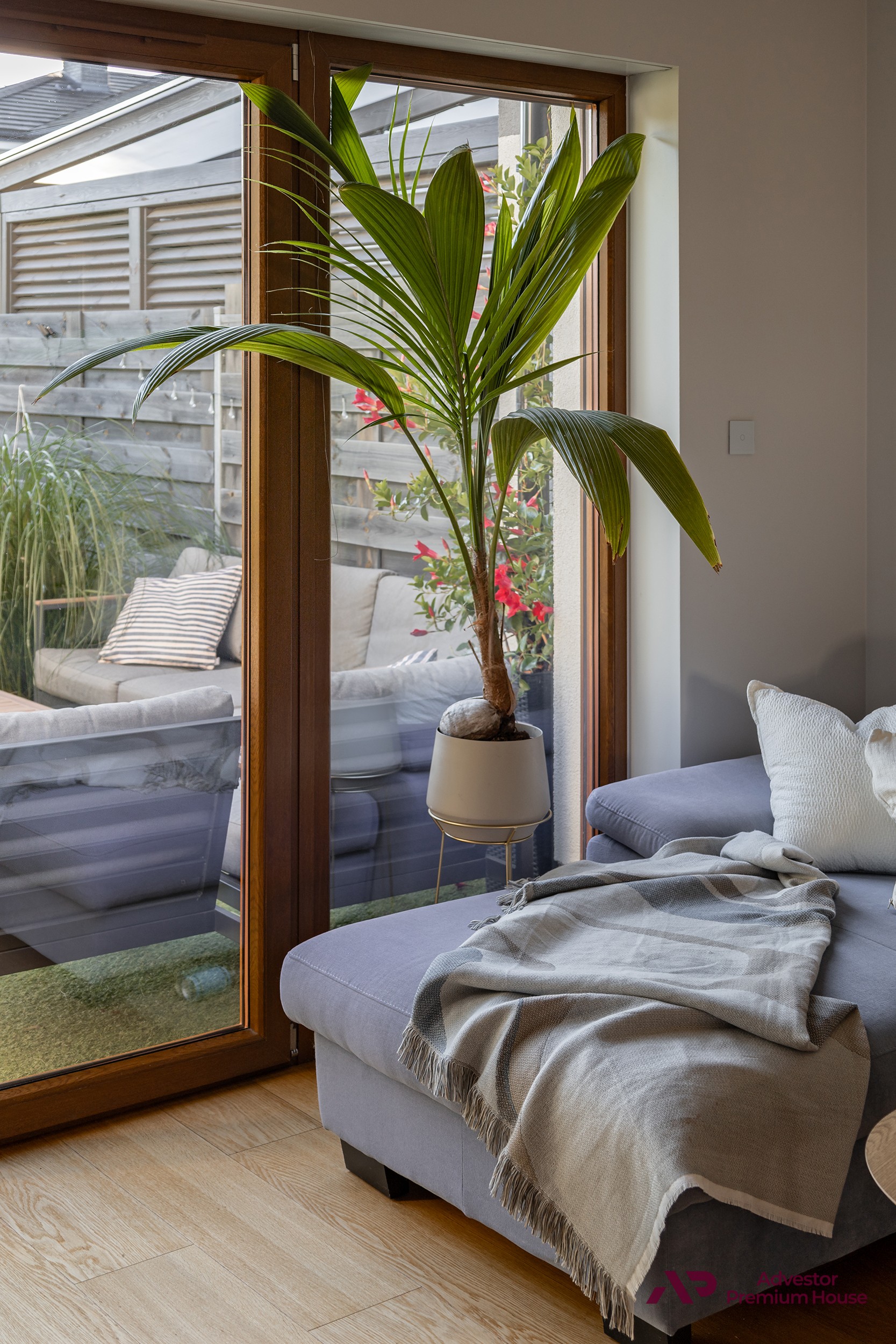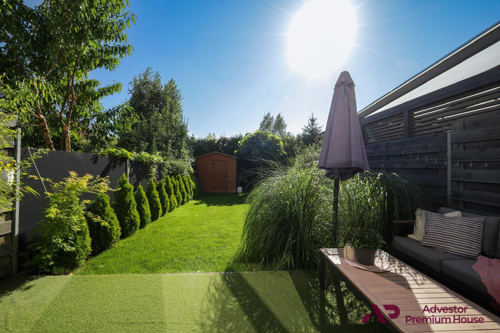 Choć działka ma 71,96 m², została starannie zagospodarowana, aby stworzyć miejsce sprzyjające odpoczynkowi.