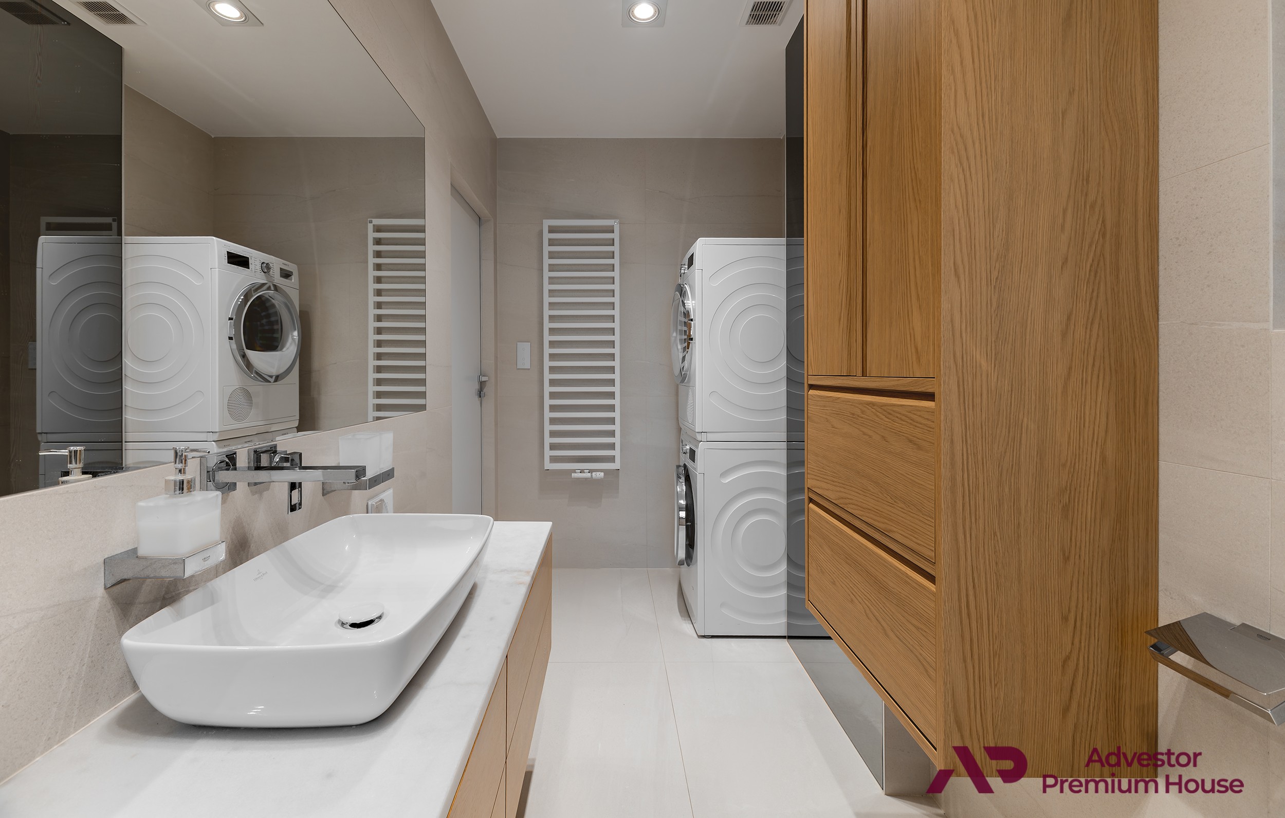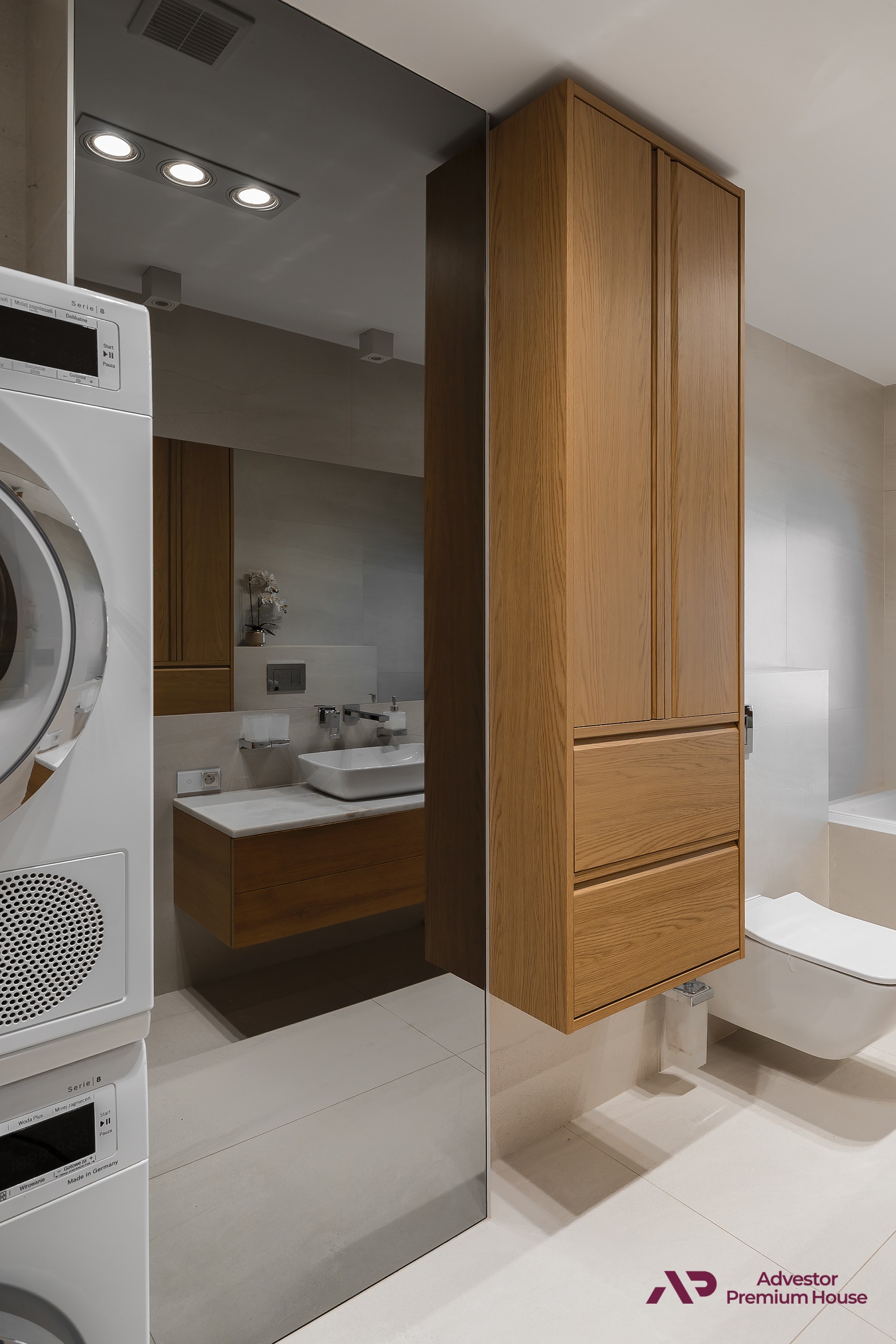 • Łazienka: marmurowy blat, pralka i suszarka Bosch, szafa w zabudowie,
