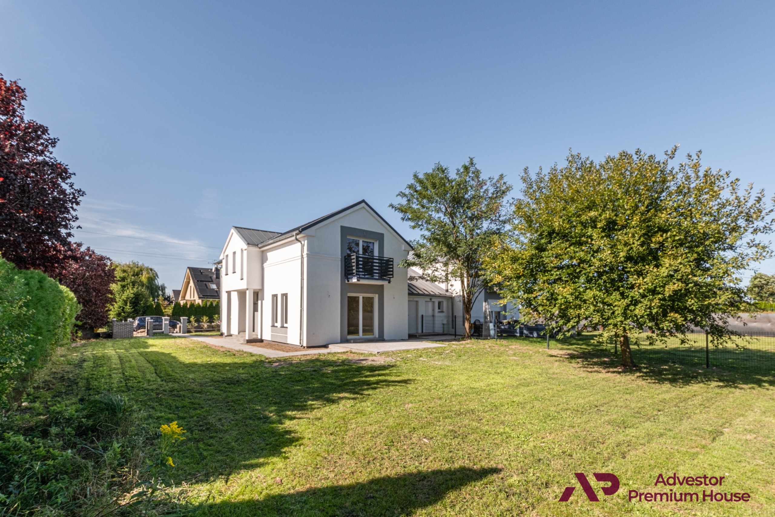Dom o powierzchni 144,67 m², w tym 129,6 m² powierzchni mieszkalnej oraz 15,07 m² garażu. Nieruchomość położona jest na działce o powierzchni 612 m². Atutem jest fakt, że dom łączy się z sąsiednim budynkiem wyłącznie garażami, co gwarantuje prywatność i komfort mieszkania. Garaż wyposażony jest w bramę sterowaną pilotem, a z jego wnętrza można przejść do kotłowni.