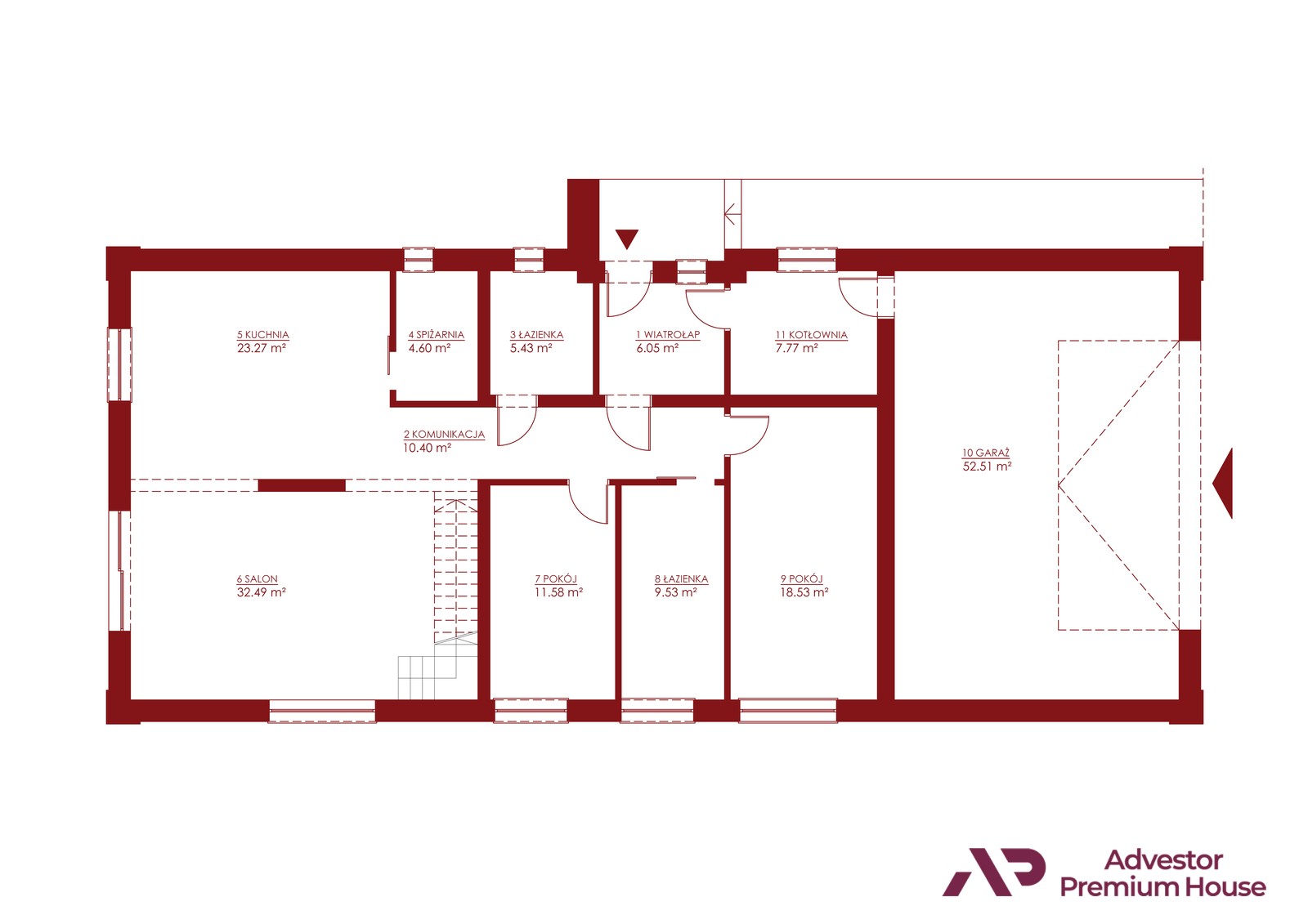 Część prywatną stanowią dwie sypialnie i dwie łazienki na parterze oraz gabinet/sypialnia na antresoli, co łącznie pozwoliłoby uzyskać przestrzeń do swobodnego życia dla rodziny 2+2. Niemniej jednak na tym etapie nic nie stoi na przeszkodzie, aby wprowadzić w projekcie jakieś dodatkowe zmiany i zmienić nieco funkcjonalność budynku np. poprzez większą adaptację poddasza.