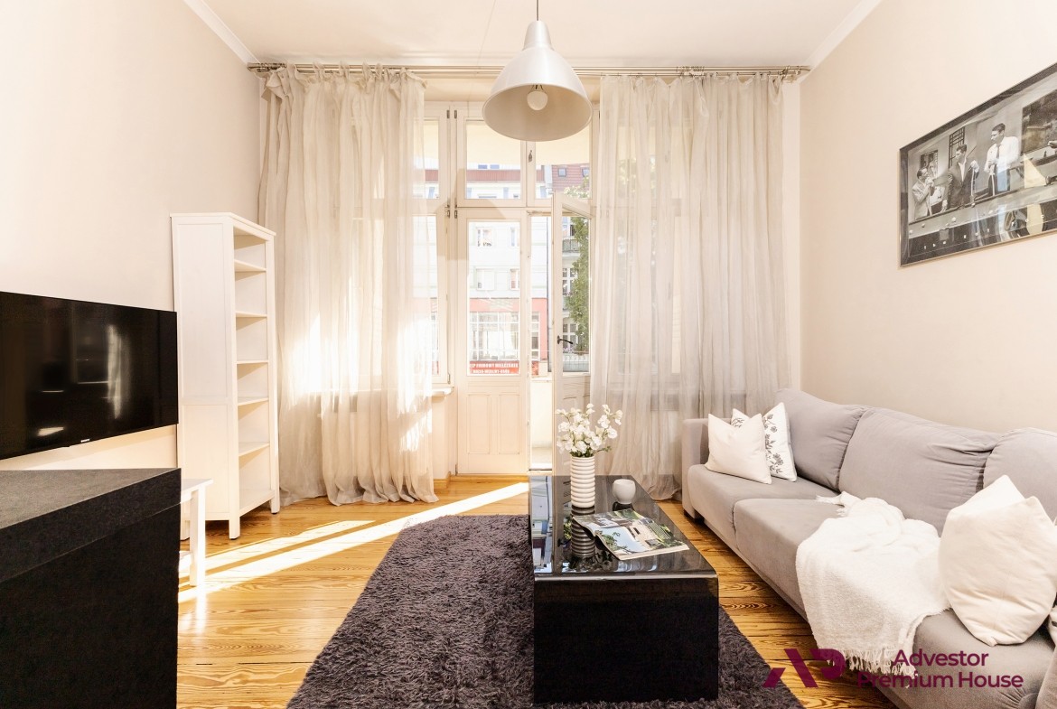 Mieszkanie jest bardzo funkcjonalne. Wysokie pomieszczenia i ich układ powodują, że czuć tu przestrzeń i wspaniały klimat – idealny dla miłośników kamienic.